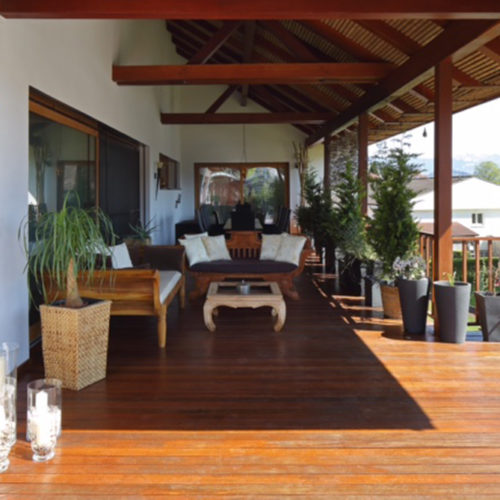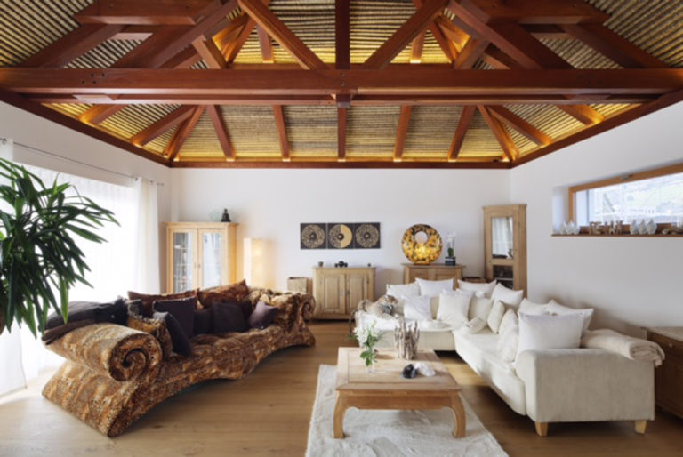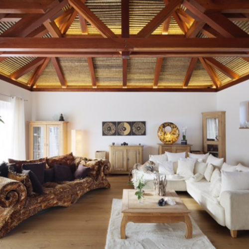 The roof structure and other wooden elements were installed at this villa to give it a unique tropical feel.